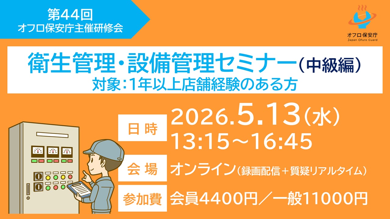 【オフロ保安庁主催セミナー#44】衛生管理・設備管理(中級編)